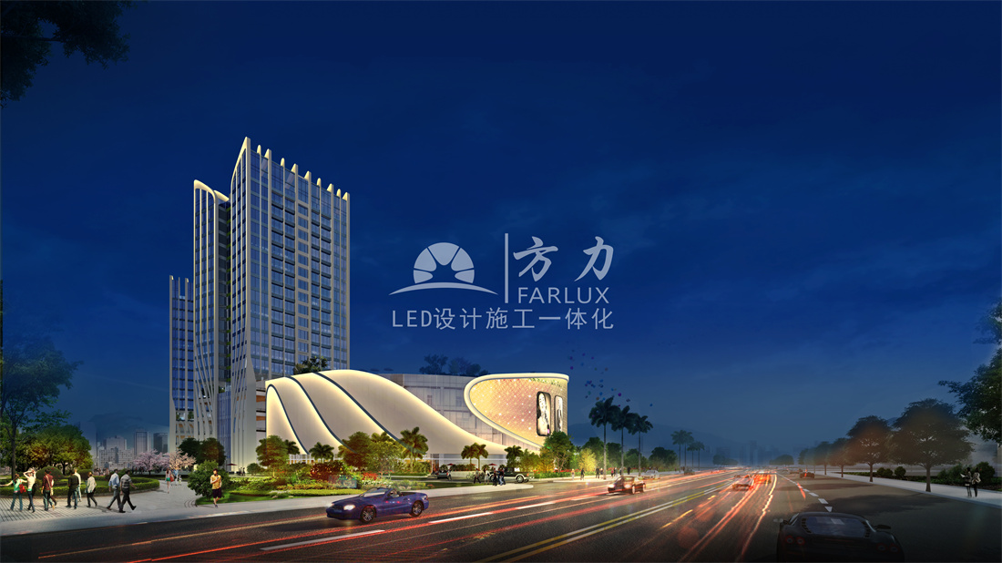 1、塔楼、裙楼全覆盖的LED泛光照明;